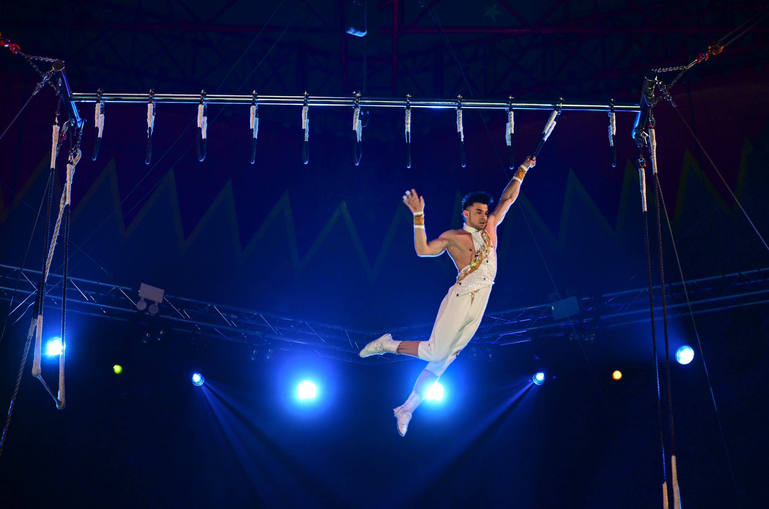 This act represents everything that makes Circus By Night exhilarating. Suspended high above the audience, performers race, balance, flip, and leap within and atop a spinning metal structure that looks equal parts incredible and impossible. Every second is a dance with danger. The speed, the height, the precision—it’s the kind of act that sends a shockwave of adrenaline through the entire tent.