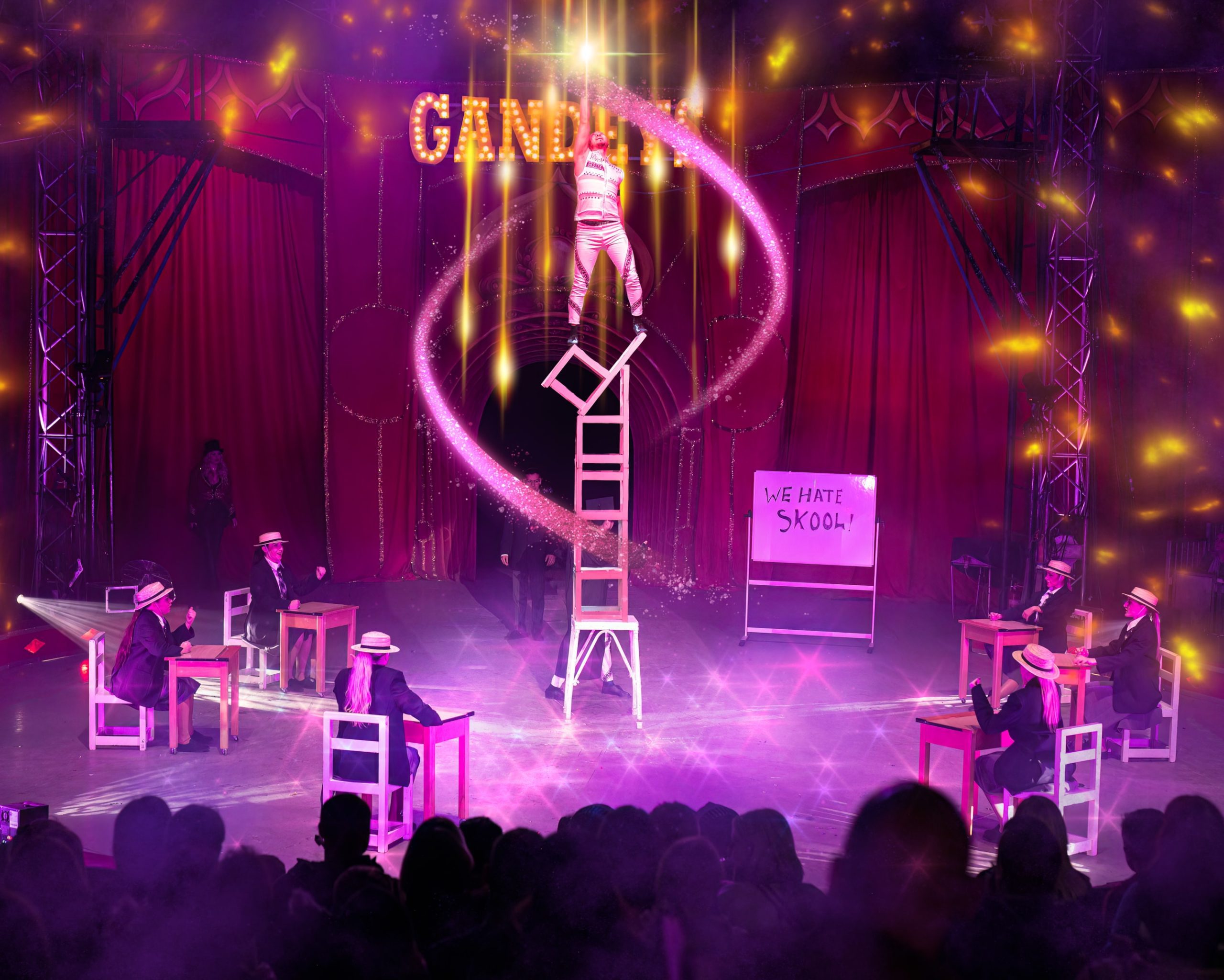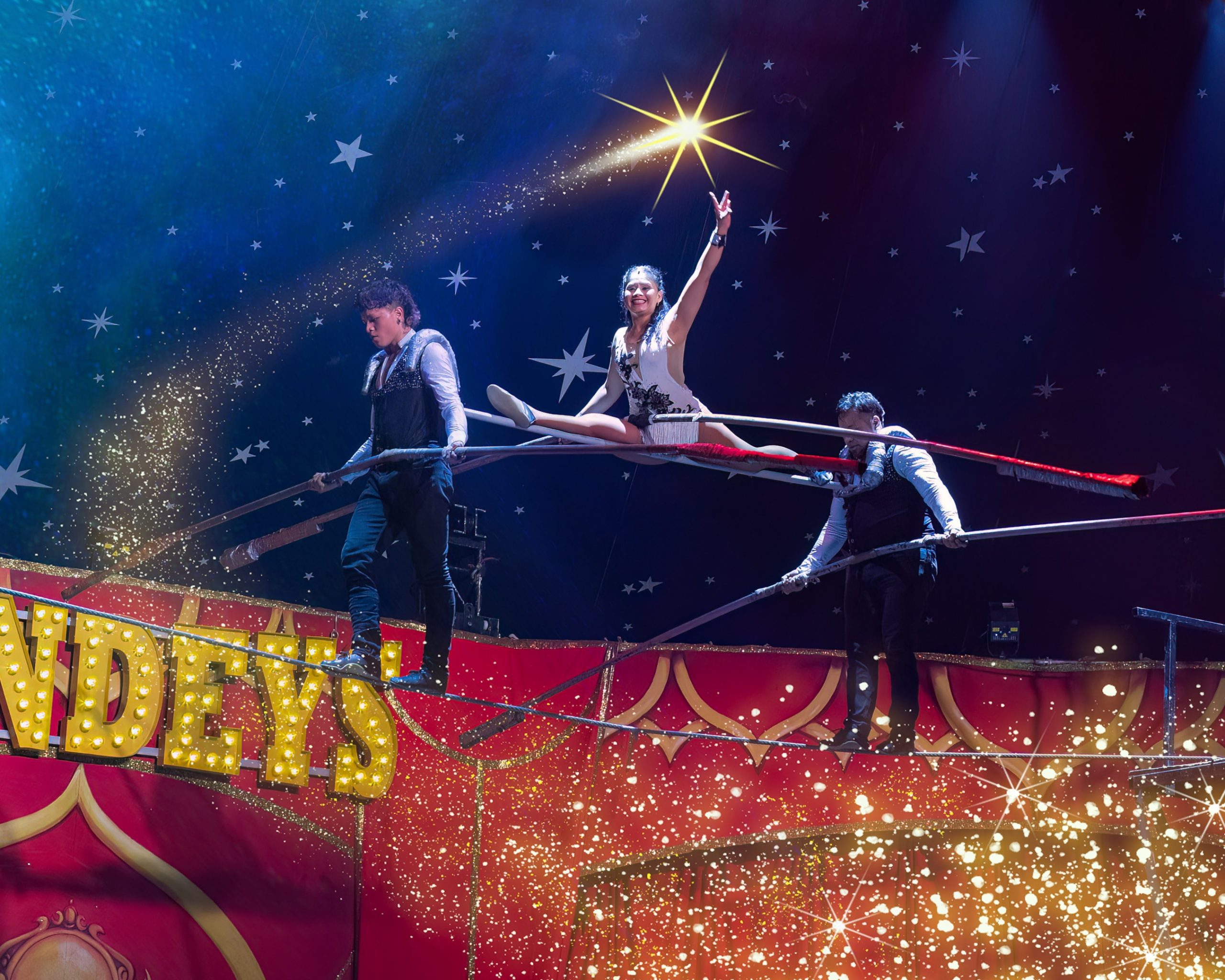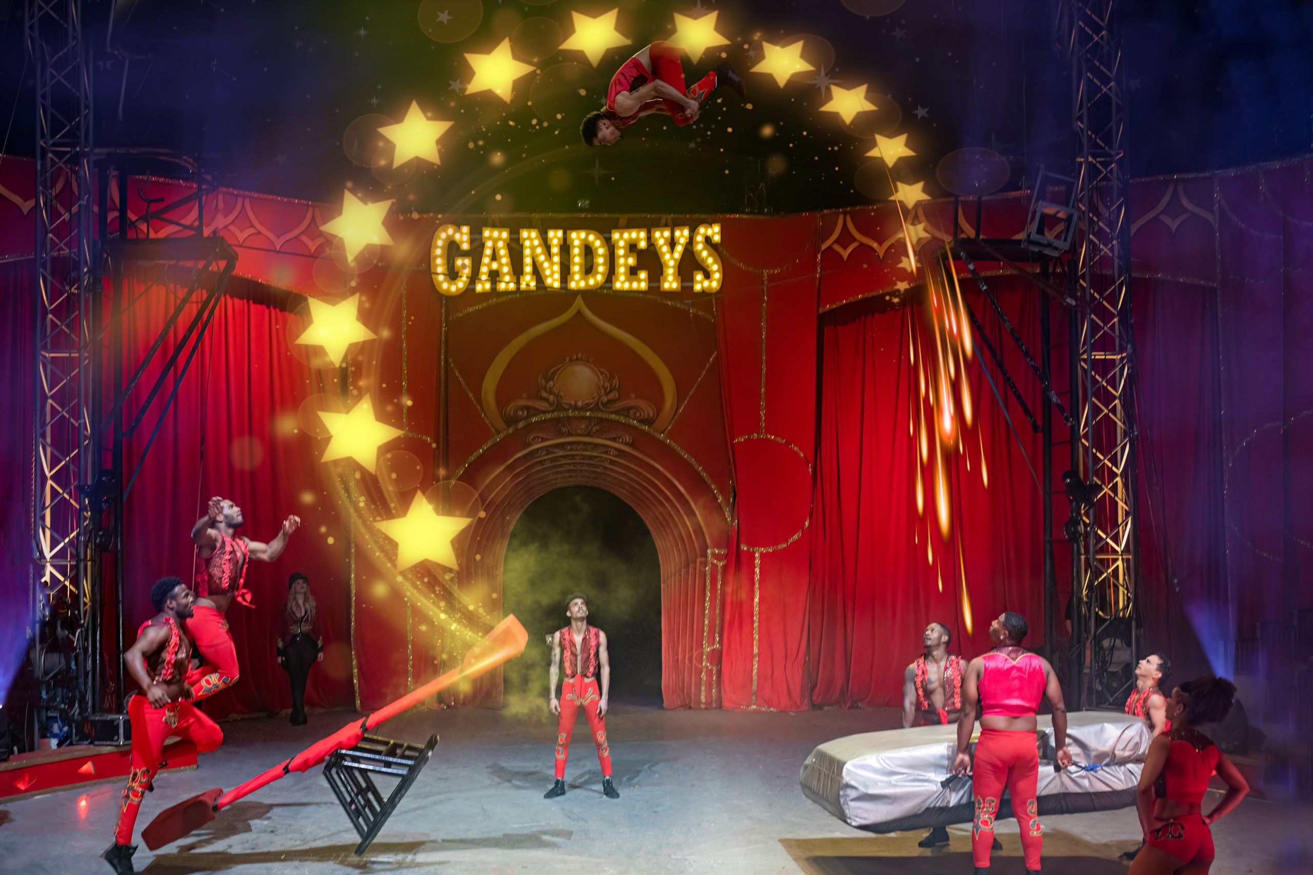 A Gandeys show usually runs for a similar length — roughly 2 hours including an interval — but the style can feel more intense. These Gandeys Circus by Night performances often feature faster speed acts, louder music, and higher-risk stunts that focus on adrenaline and spectacle. .