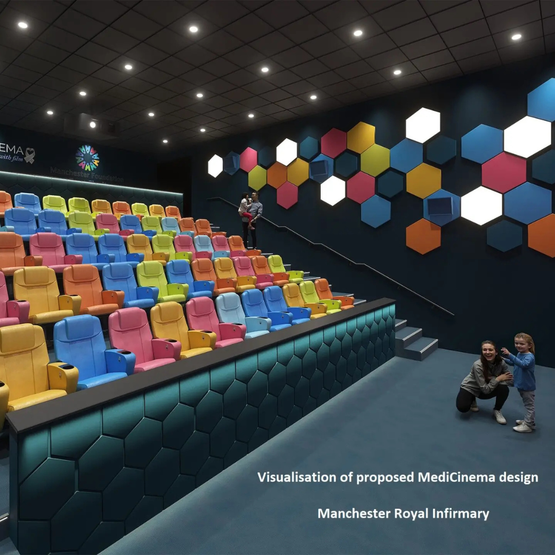 MFT Charity aims to change this by building a fully accessible, 50-seat MediCinema at Manchester Royal Infirmary, delivered at no cost to the NHS. Working in partnership with the BAFTA Award-winning charity MediCinema, the new cinema will serve patients from Royal Manchester Children’s Hospital, Saint Mary’s Hospital, Manchester Royal Eye Hospital, and Manchester Royal Infirmary.